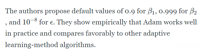 Adam综合运用了RMSprop与Momentum各自的长处:其包含了经过指数衰减处理后的过去平方梯度平均值。