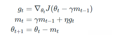 NAG是一种给我们动量项先验。使用动量项去更新参数。计算