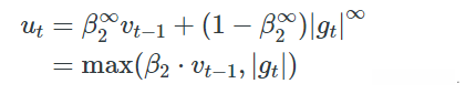 与Adam不同,不是使用偏差校正的vt 而是使用最大值来更新参数