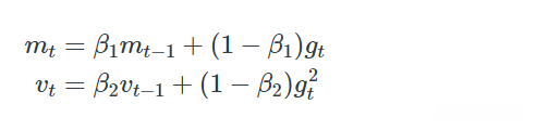 分别是梯度的一阶矩和二阶矩。作者在初始阶段进行观察,并且当衰减率较小时(例如β1 和 β2 接近于 1时)。
