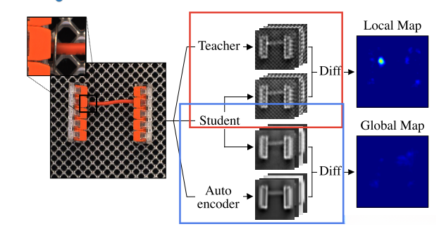 局部异常图(Local Anomaly Map):它是通过教师-学生网络对比生成的异常图。它基于教师网络与学生网络输出结果之间的差异来识别局部区域存在的不寻常现象。