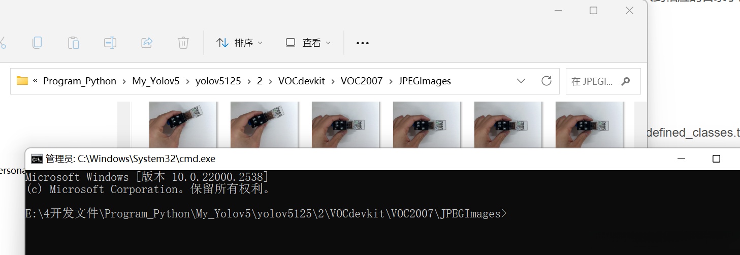 打开cmd命令终端(快捷键:win+R)。进入到刚刚创建的这个VOC2007路径(这个很重要,涉及到能不能利用predefined_classes.txt 这个txt文件中定义的类别,我在这里卡了很久,一度以为不能显示txt文件中定义的类别是我安装有问题)。执行如图中的命令进入到VOC2007路径下(每个人的路径都不一样,按个人的路径去写)如下图所示:可以看到进入到相应的目录了。