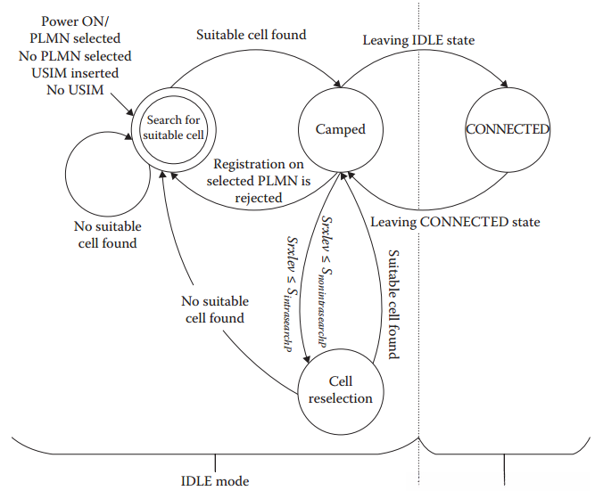 RRC仅限于两种工作状态:一种为持续空闲(IDLE)状态;另一种为联结空闲(CONNECTED)状态下限服务(USS)的状态;这些实体通常被称作IDLE运行态与USS运行态;因为每个运行态都有独特的行为与操作流程;用户体验端设备(UE)的初始工作态通常是处于 IDLE 状态;这种初始运行态通常出现在用户体验端设备首次通电或者插入移动通信系统内卡(USIM)的时候;该设备可以在这两种运行态下进行转换;在建立连接的过程中;用户体验端设备会从 IDLE 状态转变为 USS 状态;并且在此阶段可在此状态下转变为 USS 状态;当释放连接的时候则会返回至 IDLE 状态;此外用户体验端设备还可以采用第三种节能运行态;这种运行态是在保持持续向网络注册的同时实现断电以达到节省能源的目的