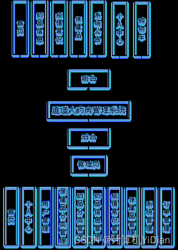 系统用户角色划分为两种类型:管理员账号和普通用户账号。作为管理员账号可以完成各项功能的操作;对普通用户的账户信息以及系统功能模块需求均具有完整的处理能力;并对系统应该具备的功能模块需求进行评估与规划。具体而言首页功能模块的操作权限包括:个人中心功能模块、用户管理功能模块等;其中具体包含的功能包括但不限于:药品分类管理功能模块、药品信息管理功能模块等;此外还包括数据录入与审核等功能;而这些都属于基础性的核心业务流程运作范畴