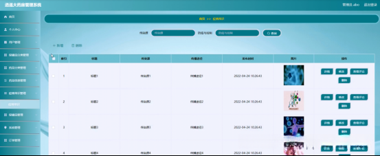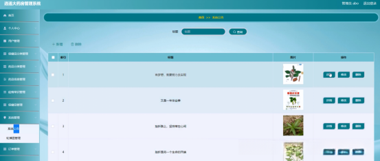 在系统公告页面设置索引、标题、图片等具体内容的详细信息,并支持内容的修改和删除操作;同时支持轮插图的具体设置。