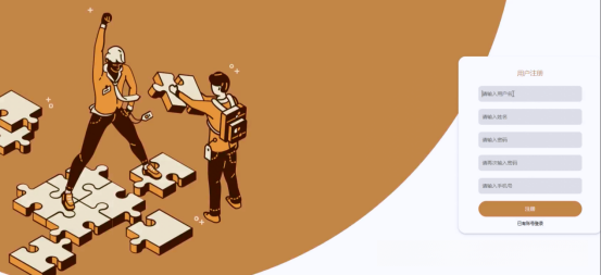 用户进行登录操作,在用户的登录页面上通过输入用户名、姓名、密码、重复密码以及手机号码等必要信息逐一填写到指定字段中去完成整个注册流程。