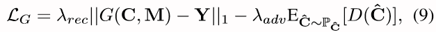 在这个任务中,学习的目标包括一个重建项和一个对抗项: