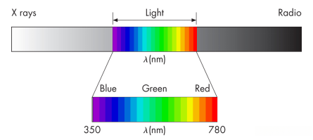 (2)波长大约介于350 -780 nm (纳米, 10^-8米)