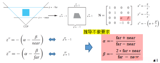 在裁剪之前,在无论是平行投影还是透视投影的情况下(两种情况),最终都会使事件体成为一个边长为2的立方体;这使得后续操作更加便捷。