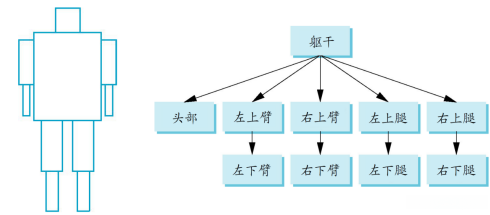 (3)关键帧动画:人工设定一系列关键帧后,在差值关节角度的基础上生成中间动画片段。