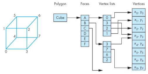 (1)存储顶点坐标+多边形(三角形/四边形)索引。