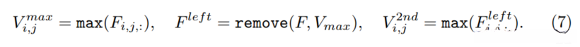 其中Mf代表阈值β₀=0.2所得的前景掩模。其中符号|·|用于计算其L1范数的结果。而V_max和V_2nd分别代表CAM特征Fa沿通道方向的最大激活值及其位置。进而可得