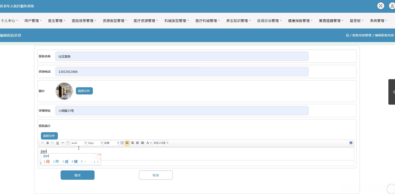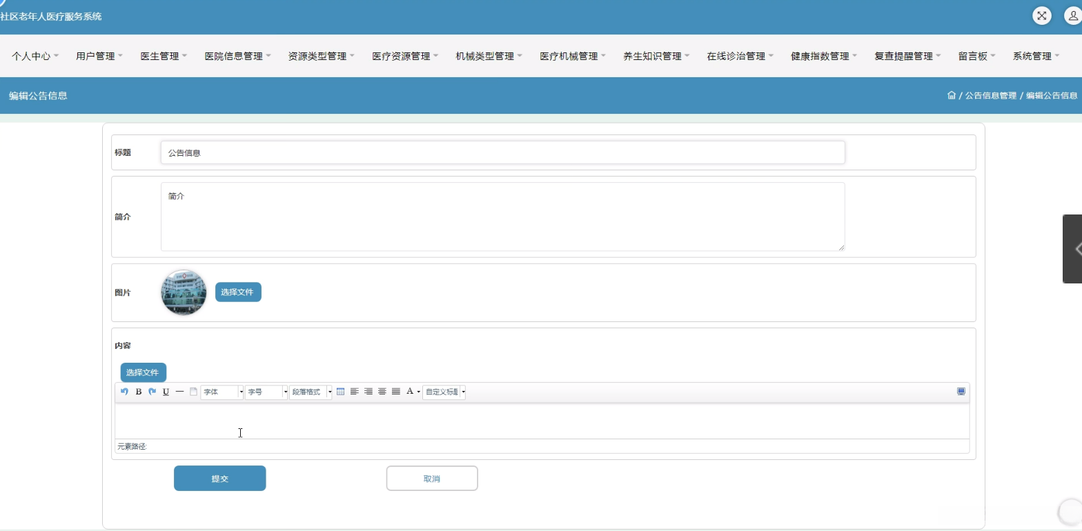 社区老年人健康管理系统(JSP+java+springmvc+mysql+MyBatis)