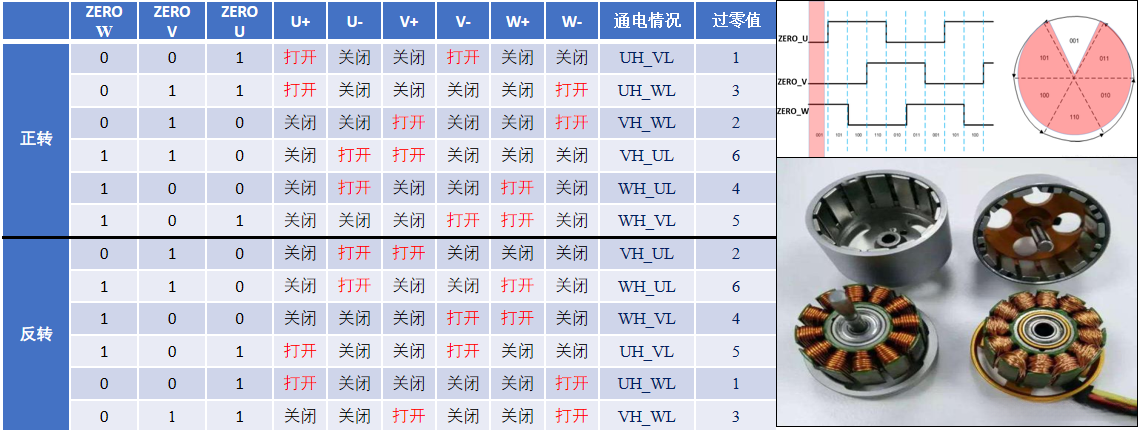 过零信号组合对应的绕组导通真值表: