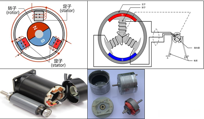 BLDC电机是一种无电刷和换向器设计的直流电机,亦称无换向器电机。与有刷直流电机相比,BLDC电机的最大区别在于完全 absence of电刷和换向器。其独特的结构特征在于转子与定子的布置实现了位置互换。如图所示,BLDC电机的定子结构在左图中为绕线式,而传统有刷电机的定子结构则采用永磁体设计。