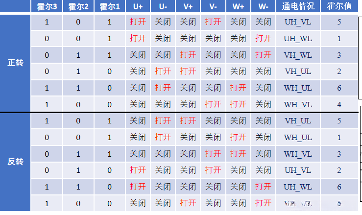 霍尔与绕组得电情况真值表,不同厂家不同,不需要记忆!