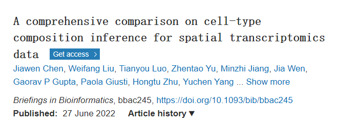 Chen J, Liu W, Luo T, et al. A comprehensive comparison on cell-type composition inference for spatial transcriptomics data. Brief Bioinform. 2022 Jun 27:bbac245.