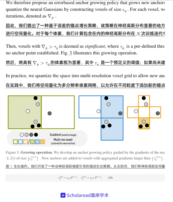 锚定点的增长与精简策略: 该研究旨在增强场景覆盖的可靠性和稳定性,并成功开发了基于神经高斯重要性的锚定点的增长与精简策略。