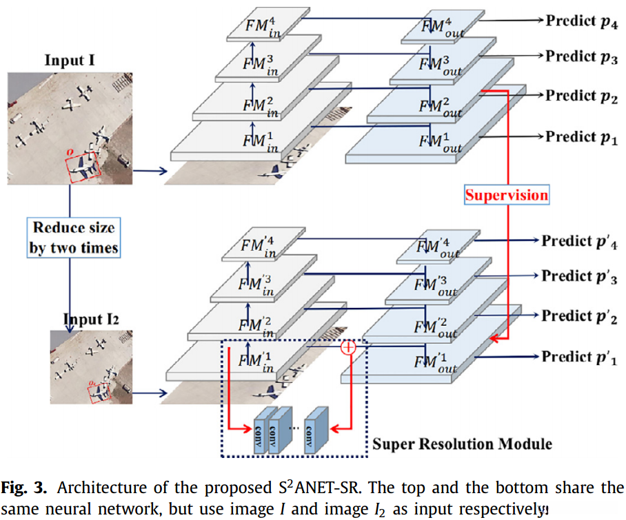 因图像分辨率降低而导致的特征信息缺陷可能进而导致检测算法失效,在本研究中我们开发并引入了一个基于S2A-NET架构设计的超分辨率模块来显著地增强小目标的特征提取能力,在模型训练过程中这些细粒度的目标特征能在FPN的深层部分中被有效提取