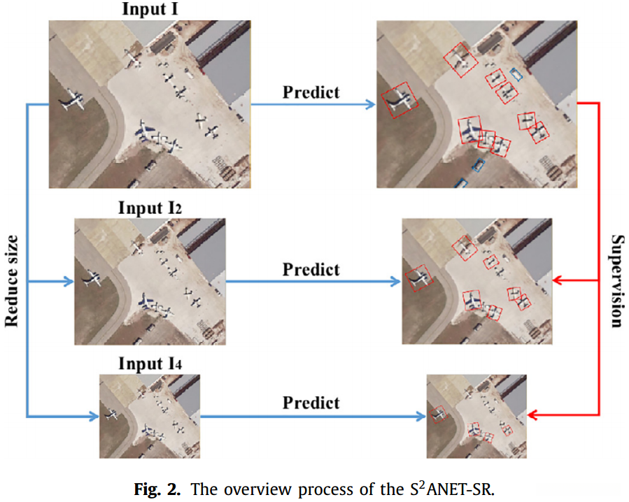 深度学习的发展为遥感图像中的目标检测领域带来了前所未有的机遇。然而,在各个研究领域取得成果的同时仍存在诸多亟待解决的问题。小目标检测被公认为这些关键问题之一 ,因此亟需持续改进与突破[1,2]。在此背景下,在本文中我们以S2A-NET [3]为基础提出了一种新型的小目标检测算法S2ANET-SR ,该算法旨在显著提升遥感图像中小目标的检测精度。鉴于所构建框架的高度通用性 ,我们的算法不仅适用于遥感图像的小目标检测 也可推广至其他小目标检测相关应用场景