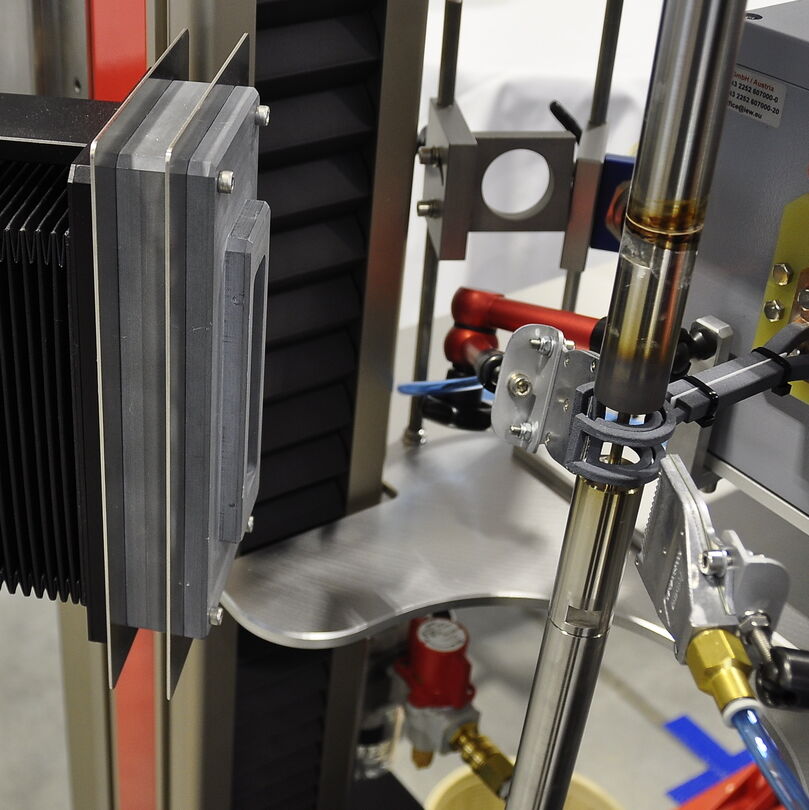 (TMF)是模仿材料在热膨胀后受到机械载荷的试验。在发电厂(热发动机)的每一次启停过程都会发生。在启动时,所有的部件从室温升高至工作温度,同时材料发生膨胀。这会在材料内部产生应力,必须精确测定该应力以免对部件造成破坏。