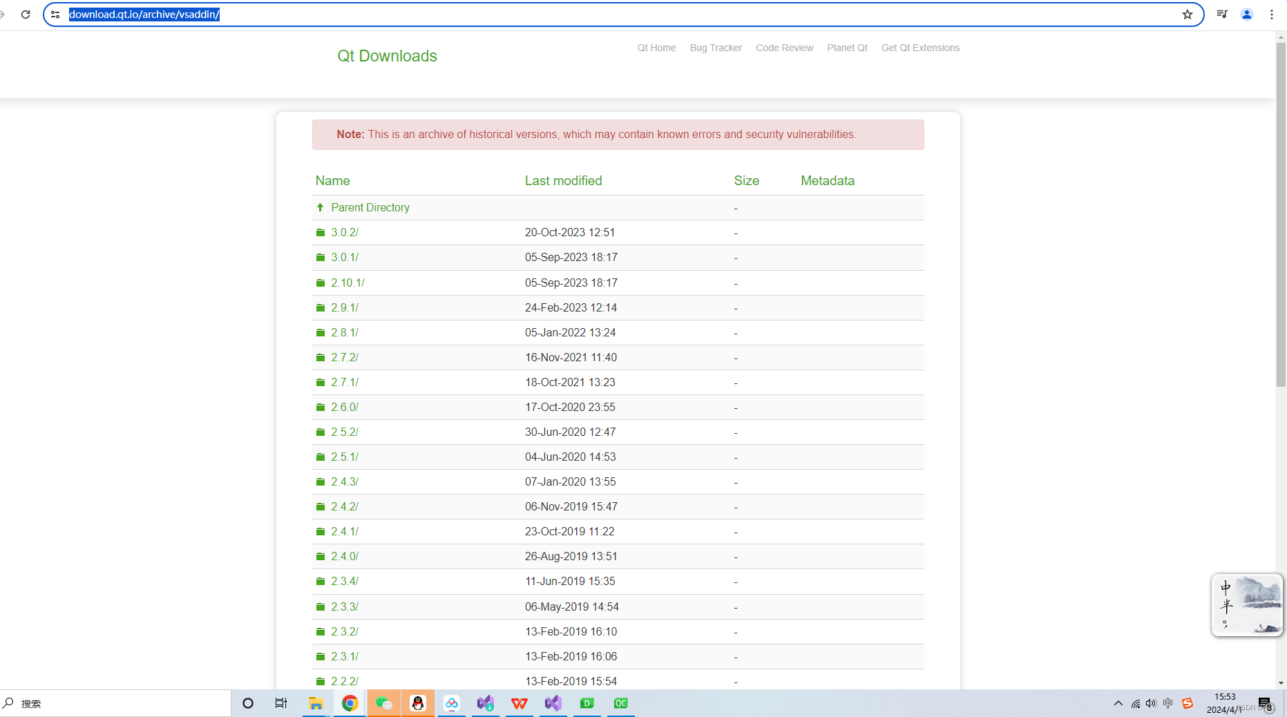 [Directory of /vsixin archiver](https://download.qt.io/archive/vsixin archiver/ "vsassin in archiver"))