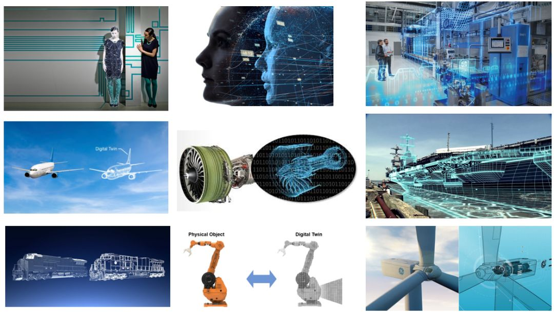 Michael Grieves与NASA长期合作。 在航天领域,航天器的研发和运营必须依赖于数字化技术:在研发阶段,需要降低物理样机的成本;在运营阶段,需要对航天器进行远程状态监控和故障监测。这也是后来NASA把数字化双胞胎(即数字孪生)作为关键技术的原因。图1-11展示了数字孪生技术在装备行业的应用。