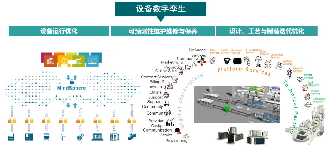 通过工业物联网技术实现设备连接云端、行业云端算法库以及行业应用APP,以西门子MindSphere平台为例说明运营数字化双胞胎的架构(见图1-17)。