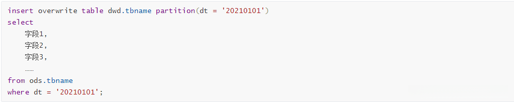 **整体需求:** 将ODS层的数据表直接加载到DWD层