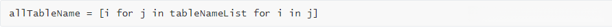 \- 所有表名都在list中