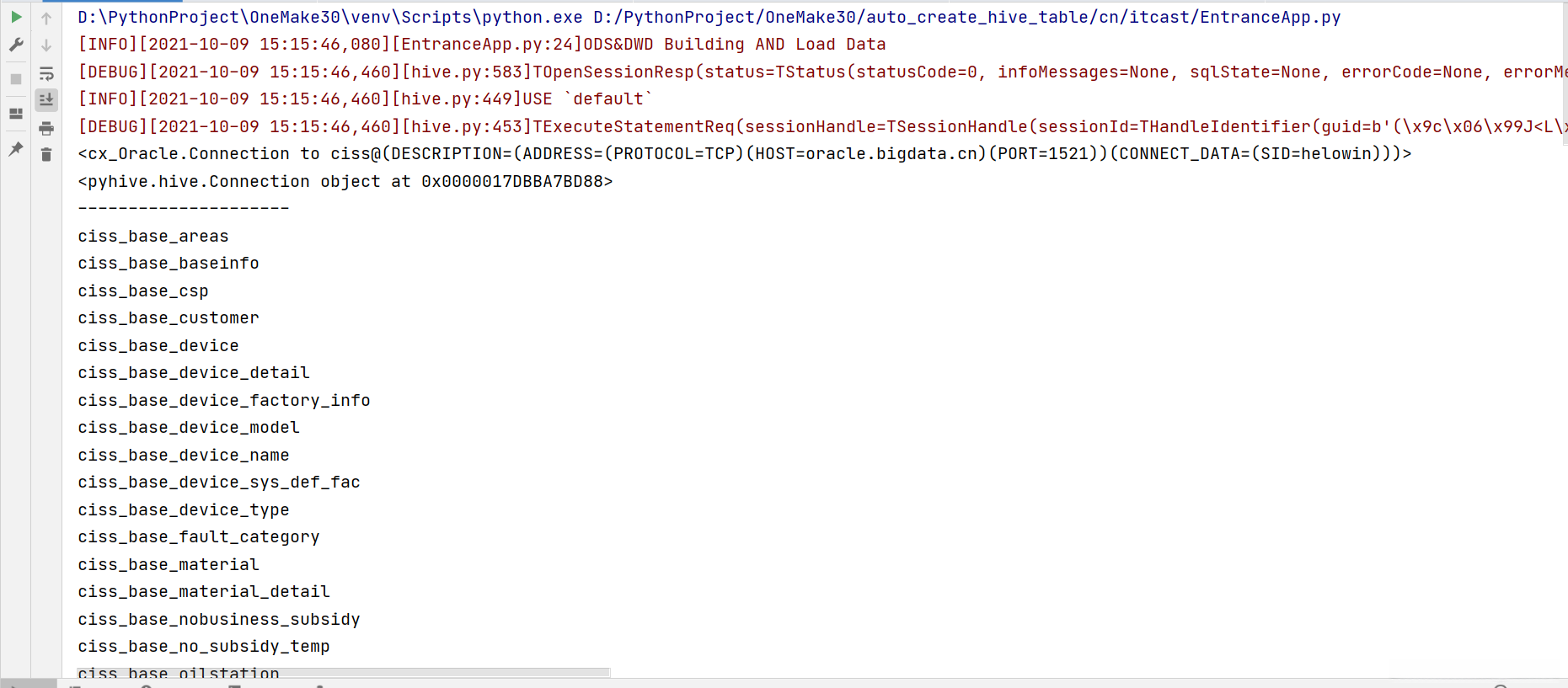 - OracleHiveUtil.py:用于获取Oracle连接、Hive连接