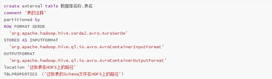 - AvroTableProperties.py:Avro文件格式对象,用于封装Avro建表时的字符串