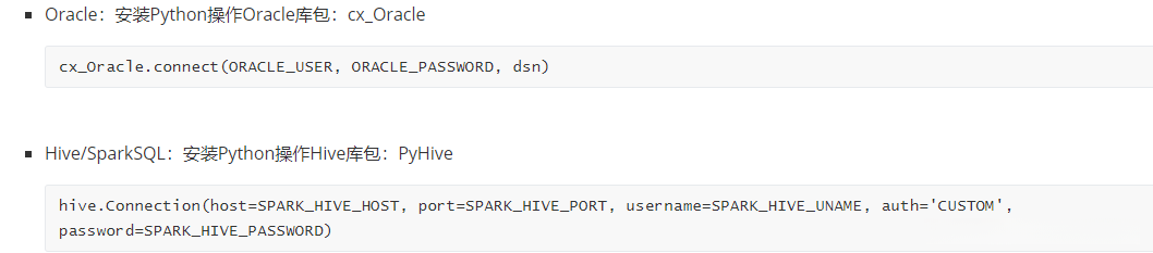 \- Python连接HiveServer或者Spark的ThriftServer:提交SQL语句