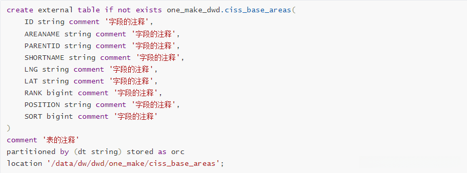 - CreateMetaCommon.py:定义了建表时固定的一些字符串数据,数据库名称、分层名称、文件类型属性等