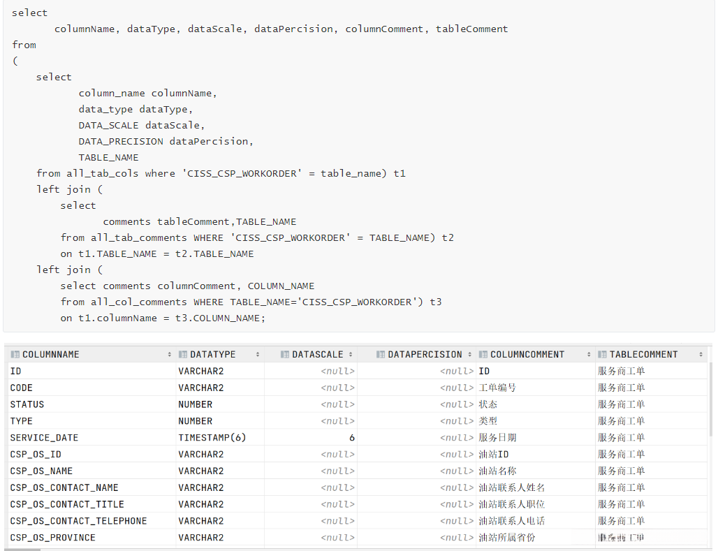 - OracleMetaUtil.py:用于获取Oracle中表的信息:表名、字段名、类型、注释等