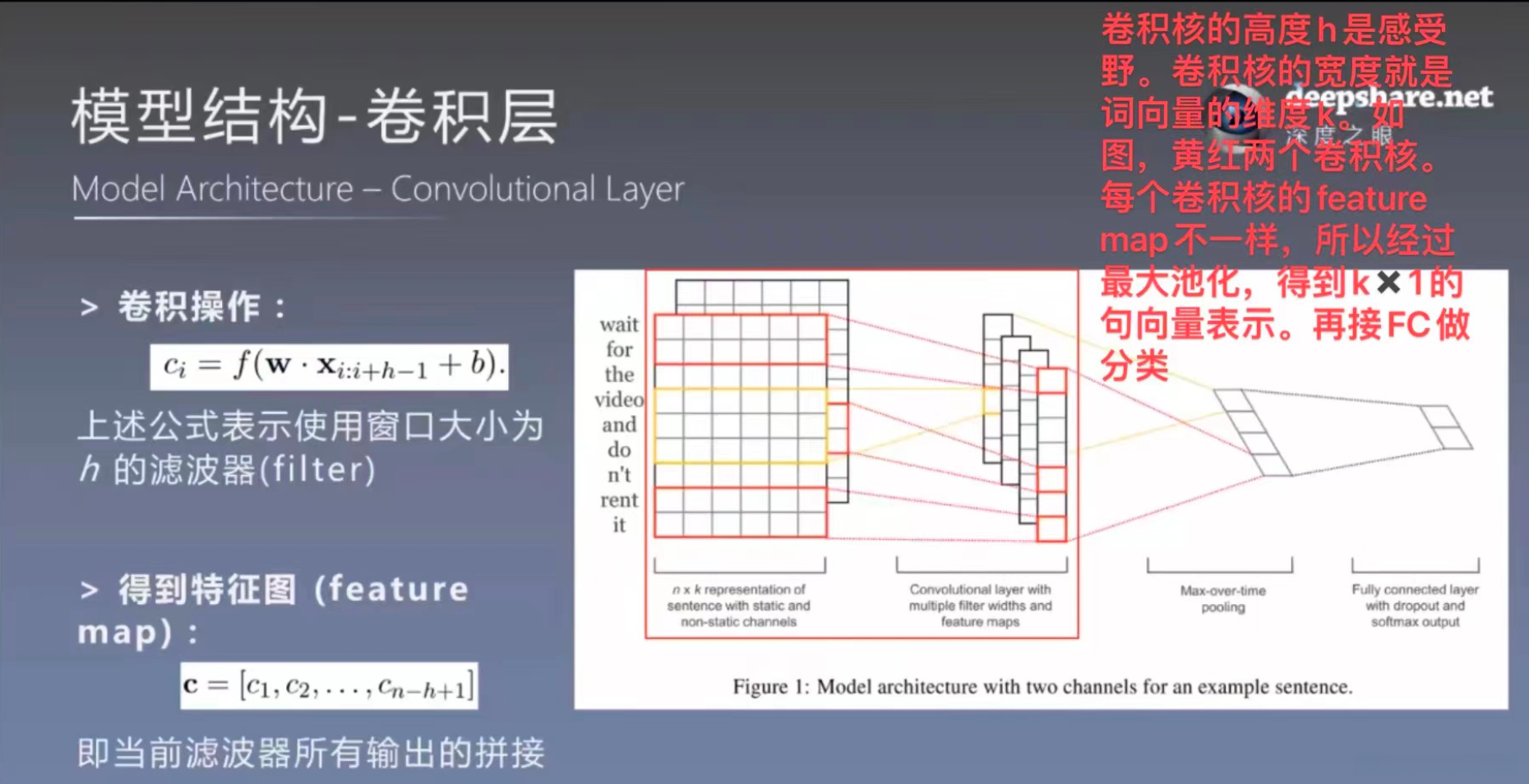 目录 一、模型 二、损失函数 一、模型 1、输入向量 是句子中第i个字的k维向量,如果句子有n个字,则句子的向量表示为n个字向量的拼接向量: 2、卷积层 使用长度为h个字符的过滤器f,f是一个非线性函...