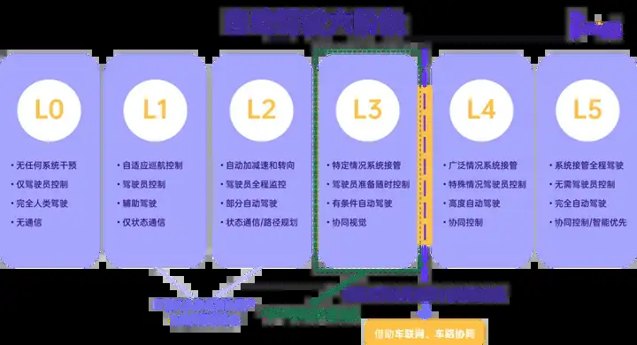 自动驾驶的分级标准由国际汽车工程师协会(SAE)提出,被广泛采用。该标准将自动驾驶技术水平划分为六个等级:
