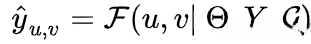 给定用户——物品矩阵 (本身是一个稀疏矩阵)和知识图谱 ,判断用户 u 是否会对物品 v 有兴趣,也就是需要学习到一个预测方程: