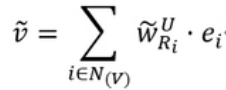 其中N(v)代表节点V的一阶邻居集,然后我们进行一次加权求和操作得到特征向量