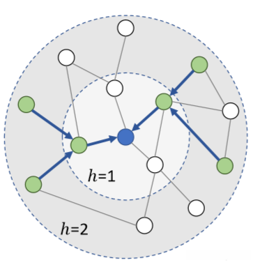 2.利用邻居信息的线性组合刻画结点v的邻域信息