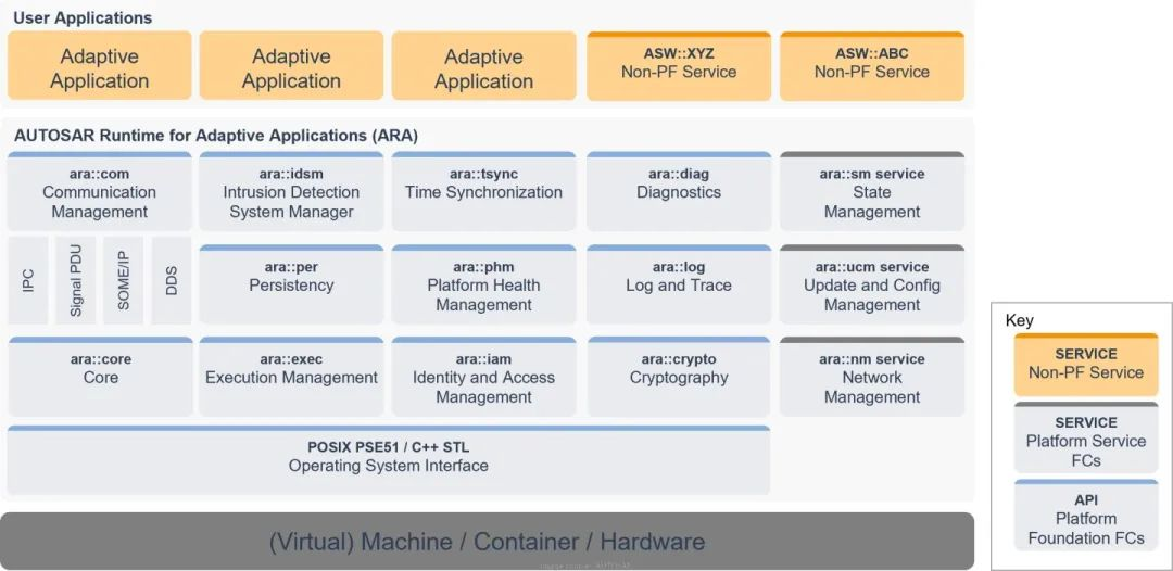 自适应应用(AA) 运行在 ARA (自适应应用的 AUTOSAR 运行时) 之上。