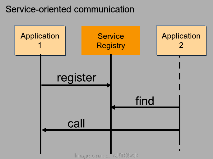 一般情况下, SOA展现出规范化的体系结构特征, AP同样具备这些特点.具体而言, 服务可能位于运行中的本地ECU上, 或者也部署于运行中的远程ECU上, 后者此时正执行AP的另一个实例.在上述两种情形下, 应用代码保持一致, 而通过基础通信架构来实现透明化的通信功能.