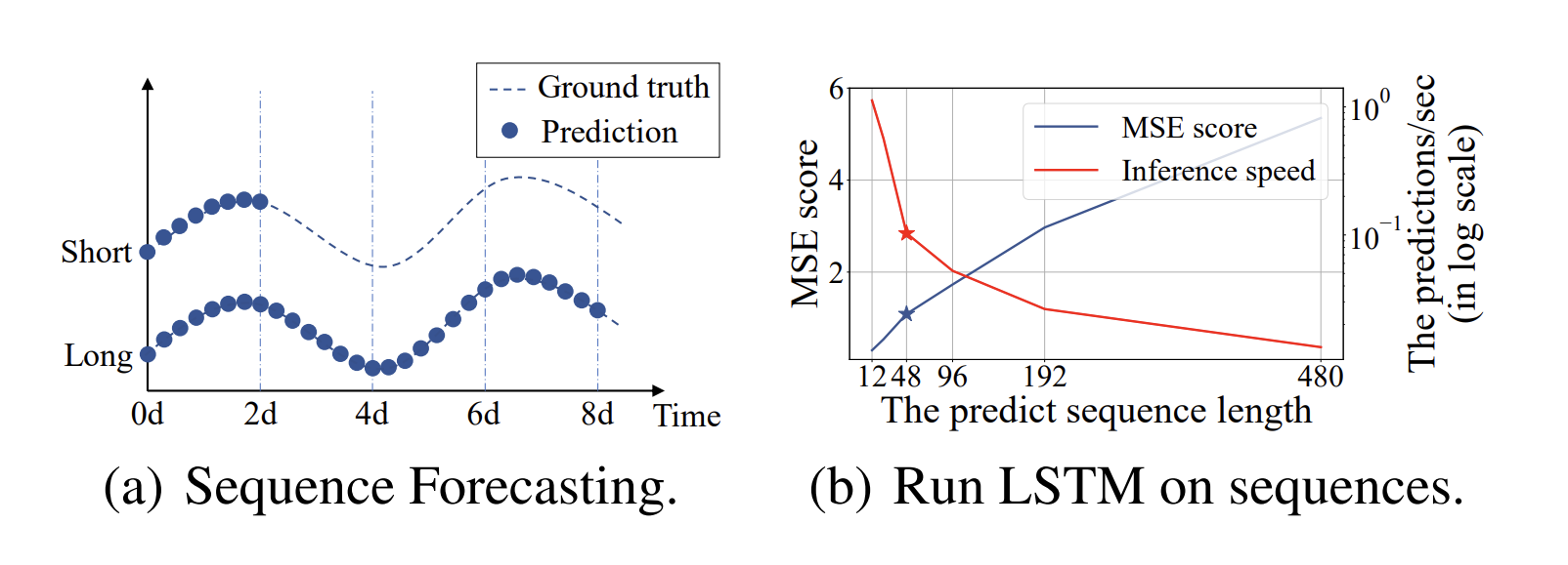 (a) LSTF 能够涵盖比短序列预测更为持续的时间,在政策制定与投资保护等方面展现出显著差异性。