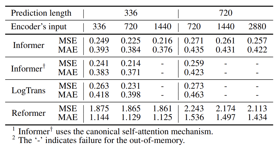 表 2:四个数据集上的多变量长序列时间序列预测结果(5 个案例)