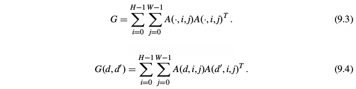 We calculate the correlations between response patterns across various filters as style-related metrics, where the expectation is calculated based on the spatial extent of the input image. These feature correlations are represented by G ∈ R^{D×D}.