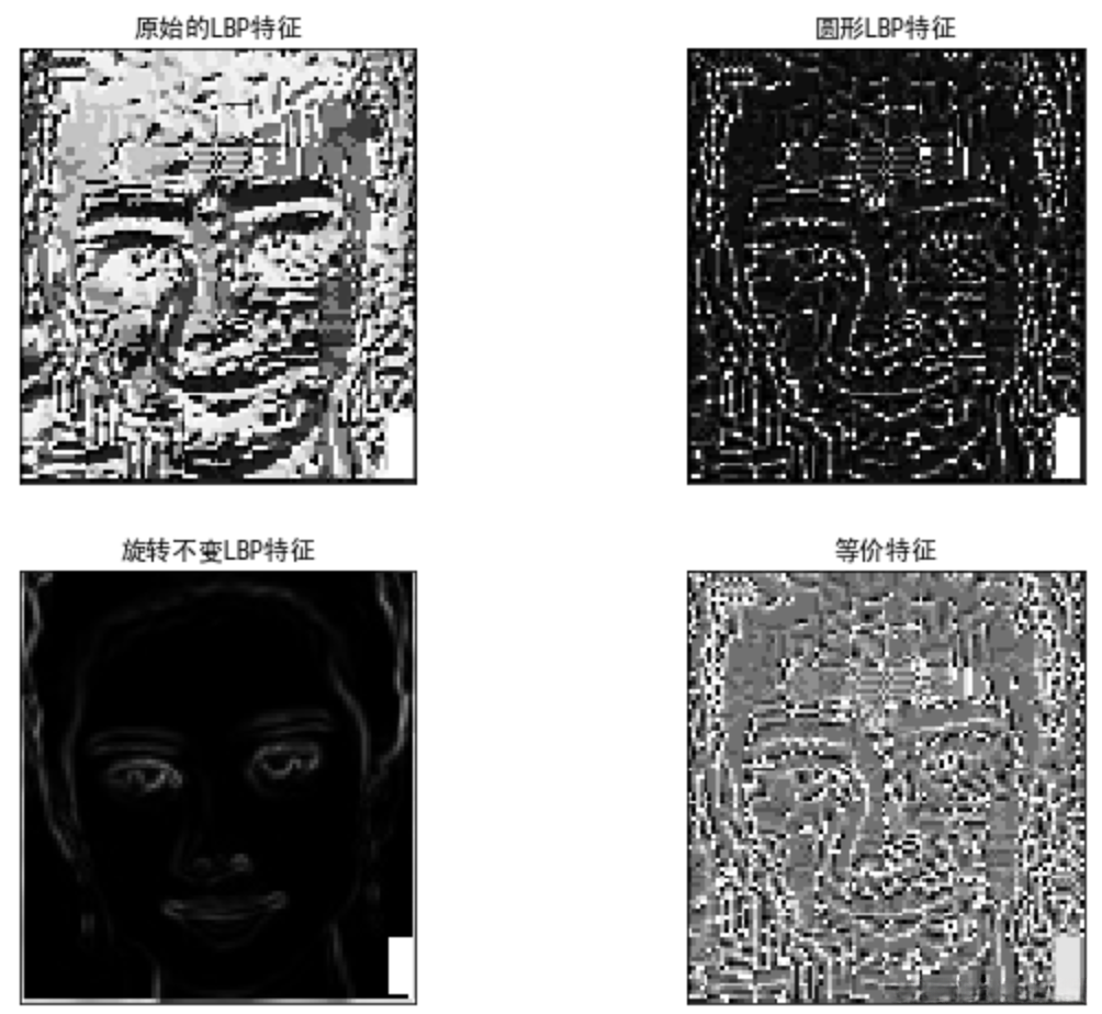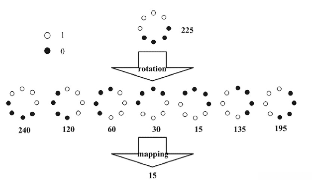 旋转不变LBP算子 :不断旋转圆形邻域得到一系列初始定义的 LBP值,取其最小值作为该邻域的 LBP 值
