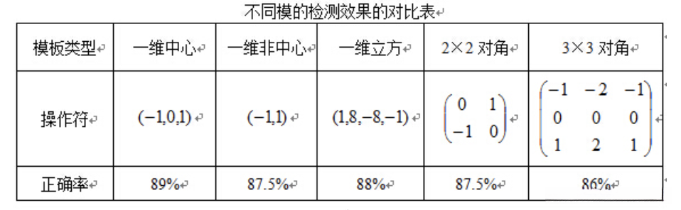 边缘是由图像局部特征包括灰度、颜色和纹理的突变导致的。一幅图像中相邻的像素点之间变化比较少,区域变化比较平坦,则梯度幅值就会比较小,反之,则梯度幅值就会比较大。梯度在图像中对应的就是其一阶导数,所以图像梯度计算利用一阶微分求导处理,不仅能够捕获轮廓、人影以及一些纹理信息,还能进一步弱化光照的影响。Dalal研究了很多算子,如下表所示:
