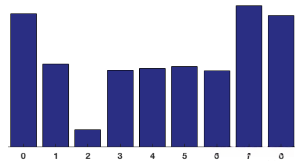 遍历整个cell中的所有像素点,便可以得到该cell单元的梯度方向直方图: