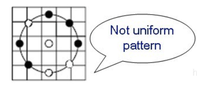 Uniform Pattern LBP特征 :当某个LBP所对应的循环二进制数从0到1或从1到0最多有两次跳变时,该LBP所对应的二进制就称为一个等价模式类。除等价模式类以外的模式都归为另一类,称为混合模式类。