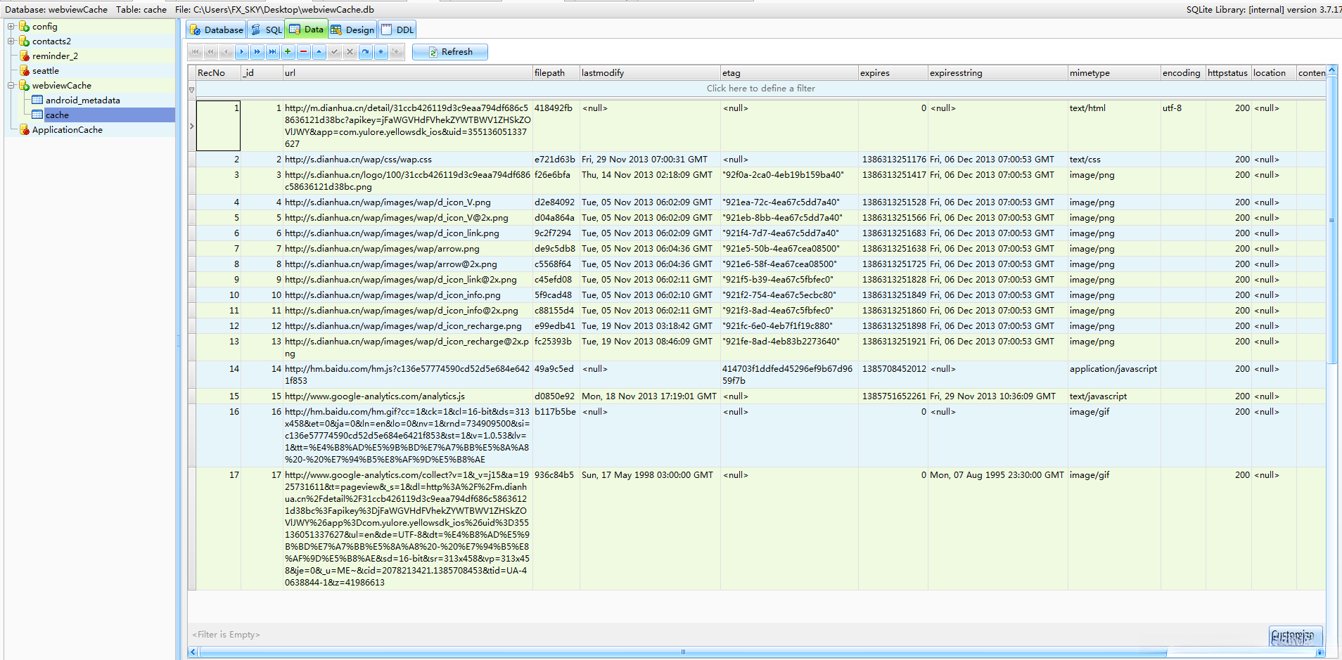 我们请求的Url记录是保存在webviewCache.db里,而url的内容是保存在webviewCache文件夹下.
